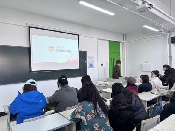 团校培训开始,分团委副书记邵莫楠为大家介绍团校培训的具体流程与内容。随后,张翎轩同学以“共青团概况”为切入点,从团的历史沿革、组织架构到团旗、团徽的象征意义,生动讲述了共青团在党的带领下发展的光辉历程。此后,张翎轩同学系统介绍了入团条件与共青团的任务,让同学们明确了团员应坚持拥护党的领导,在学习与实践中助力社会主义物质文明、政治文明、与精神文明建设。