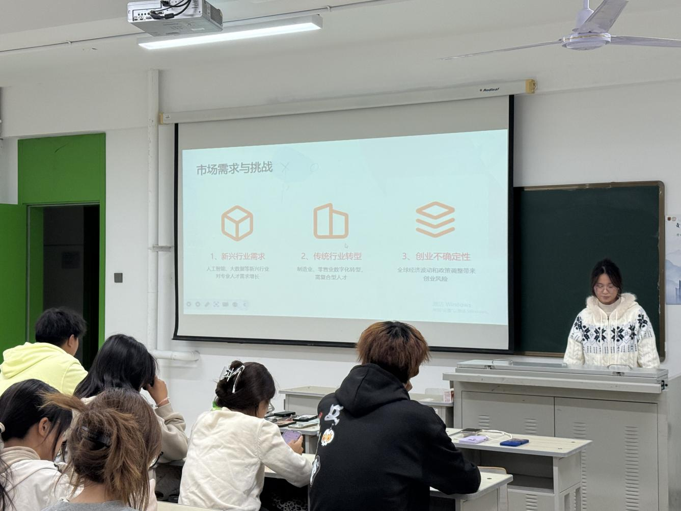 最后,班会针对市场需求与挑战给出应对指引。为同学们分析了新兴行业人才需求增长、传统行业转型需复合型人才的机遇,以及创业面临的不确定性风险,并提供技能提升与职业规划等建议。此次班会充分彰显文化产业商学院对新生就业创业教育的重视,以扎实启蒙教育助力新生夯实职业发展基础,尽显了学院的育人使命与担当。