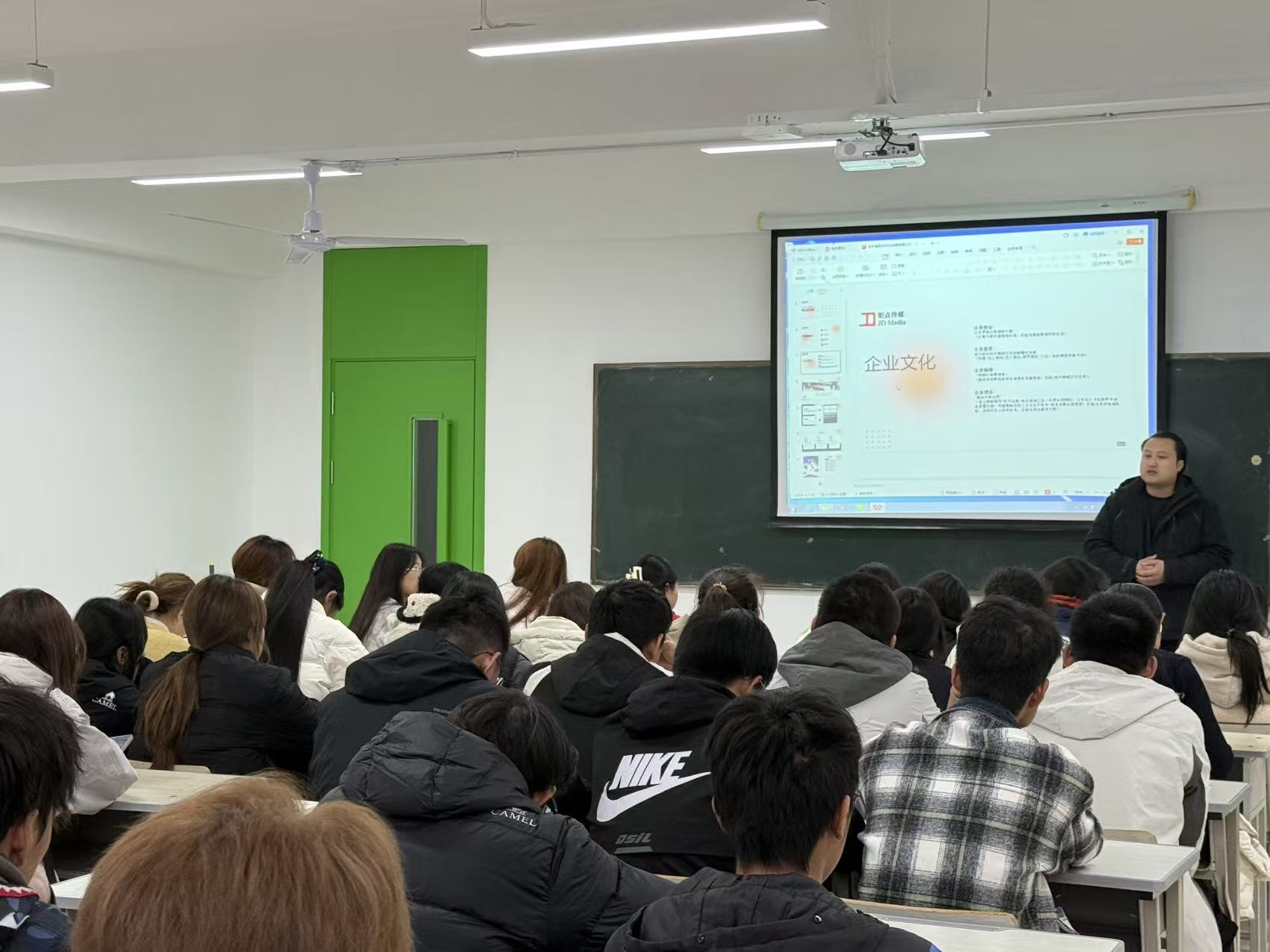 为助力毕业生对接商贸行业优质资源,提升就业适配度与职业发展潜力,文化产业商学院于2025年10月17日在B528教室携手吉林省钜点文化传媒有限公司开展了以“精诚合作、携手共进”为主题的线下企业宣讲会,来自学院的50余名毕业生积极参加。