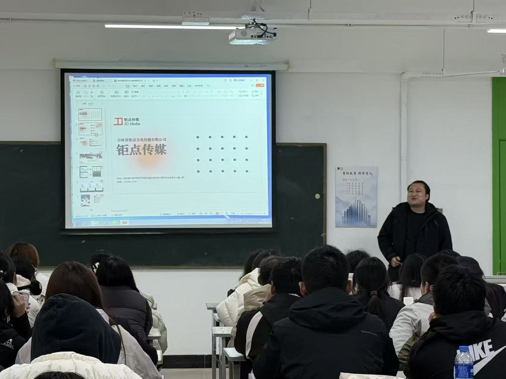 宣讲伊始,吉林省钜点文化传媒有限公司负责人带领企业团队,通过PPT展示、案例解析等形式,全面介绍了钜点传媒的整体情况。作为吉林省颇有影响里的传媒企业,钜点传媒深耕文化传播、新媒体运营、广告创意等业务板块,详细解读了本次招聘的岗位需求并制定培训策略,帮助高校学子精准对接传媒行业优质就业机会。