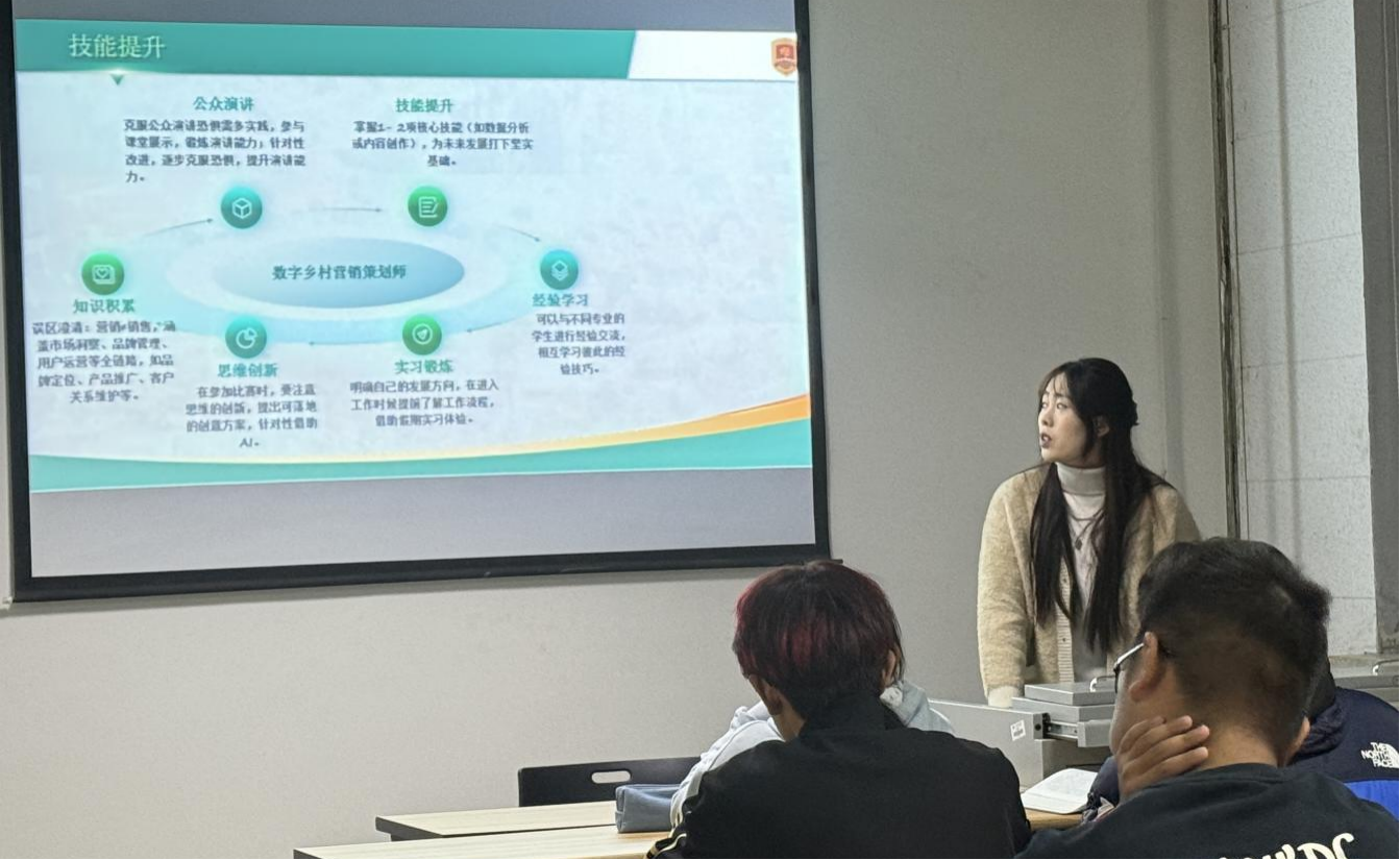 为帮助新生快速适应校园生活、明确学业规划方向,文化产业商学院于2025年10月20日在B楼各班晚自习教室开展了优秀学生经验分享会。本次分享会邀请到学院各专业的多位优秀学长学姐,到本专业的新生教室进行了一场极具针对性的经验分享。