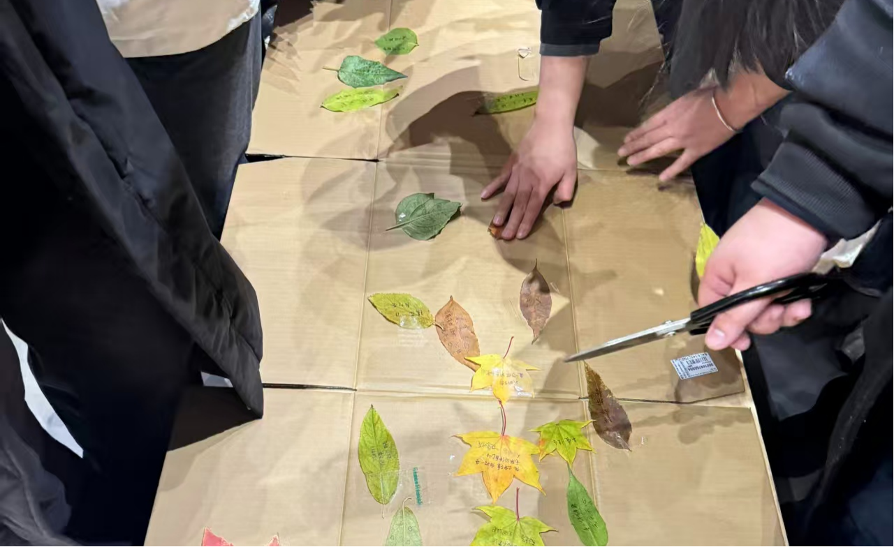 活动现场,参与者化身为“自然创作者”,在校园的各个角落捡拾形态各异的秋日落叶。大家自备画笔或钢笔,在这些落叶上自由书写心声,本次活动不设创作主题,大家可以表达对亲友的思念、对生活的感悟或对未来的期许,每一片落叶都成为独一无二的“情感载体”。