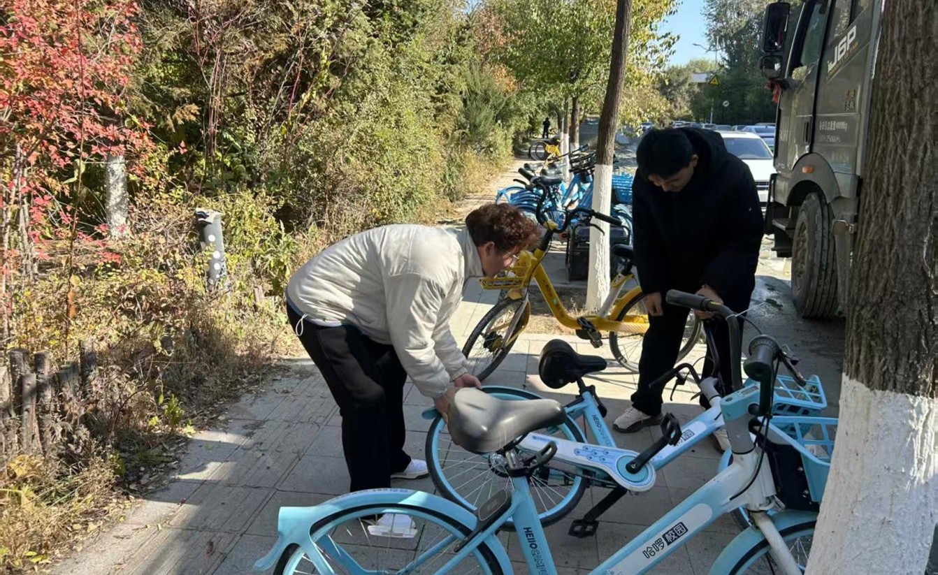 活动前期,组织者按区域划分小组,明确每组负责的校园路段及周边点位,确保单车整理活动有序开展。各小组成员按时在学校月亮门集合,领取任务后迅速前往责任区域。“单车归位”活动正式启动,扶正倾倒单车、搬运乱停车辆至停车区、清洁车筐车身,志愿者们分工明确,通力合作,为道路整洁畅通发挥青年力量。