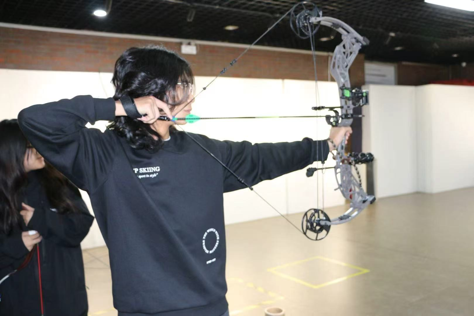在弓箭体验环节,羽林弓社社长闫锦旭细致讲解弓箭的历史文化、持弓姿势、瞄准技巧等核心内容。随后的体验环节,羽林弓社成员们耐心指导,从拉弓、搭箭到发射,帮助健美社团成员克服初次尝试的紧张感。最后的交流互动环节,社团成员们围绕“运动中的专注与坚持”展开分享,不同运动背后的精神内核引发了大家的共鸣。