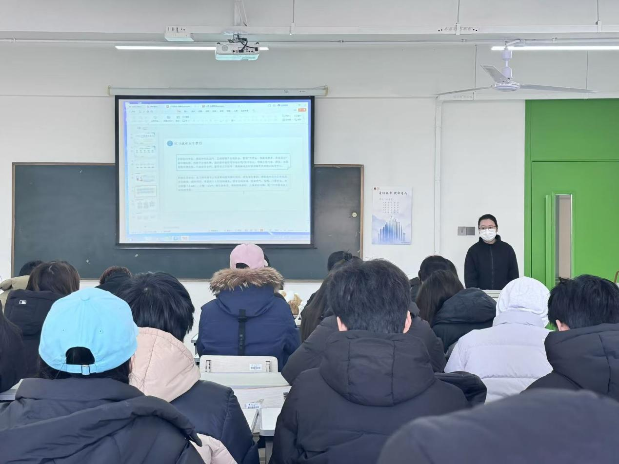 班会伊始,刘馨忆辅导员首先讲解了就业的相关常识。她围绕求职陷阱甄别、职场安全防护等要点,强化了学生实习就业风险意识;从企业就业、自主创业、升学等不同发展方向的选择,帮助同学们尽早确立就业方向;并科普五险一金保障范畴,详细解读应届生身份认定标准,帮助毕业生系统掌握就业全流程核心信息,为求职与入职筑牢基础。