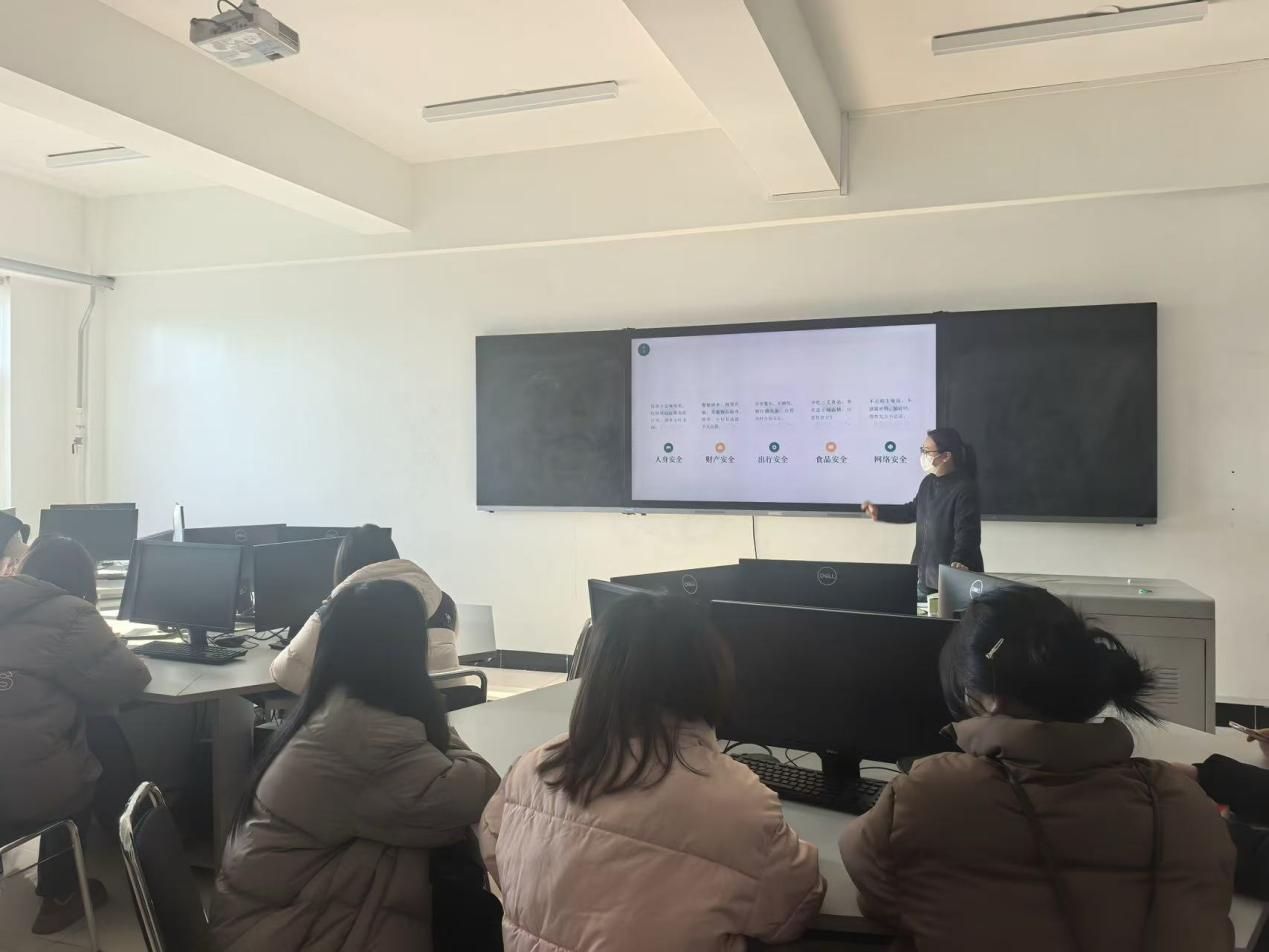随后,刘馨忆辅导员强调了离校注意事项。从人身、财产、出行、食品、网络等多维度开展安全教育,提醒学生在就业实习期间确保人身财产安全。并强调了就业实习期间要注重未完成的学业,如创新学分、重修和修高分科目、毕业实习与毕业论文等,要求学生保持通信畅通,及时关注各类通知,确保就业与学业收尾有序衔接。