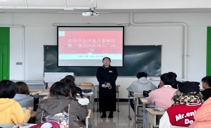 为做好2024年国家奖助学金评选工作,确保工作顺利开展,营造积极的学习氛围,形成良好学风。文化产业商学院于2024年10月11日召开了国家奖助学金评选方案解读暨“强学风促成长”活动班会,班会由辅导员张娜、郝艳艳分别主持,2021-2023级全体学生参加。