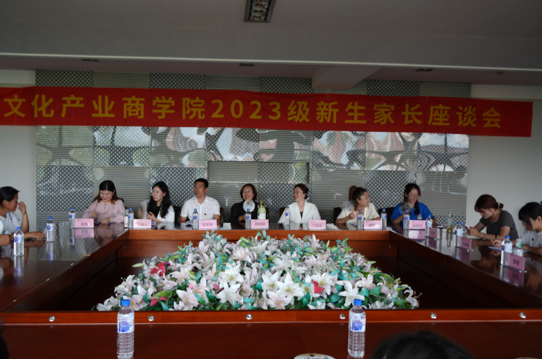 为充分发挥家校协同育人工作实效,构建沟通桥梁,加强家长对学校、学院的认识,促进学生成长成才,8月26日下午一点,文化产业商学院在图书馆四楼会议室召开2023级新生家长座谈会。文化产业商学院常务副院长韩国薇、副院长丁丽华、院长助理刘宝雨、系主任柳明、高搏、王禹心、骨干教师黄睿、张思宇、武博涵、新生辅导员宋楚宁、国际合作发展中心干事佘琬璐以及2023级家长代表参加会议。会议由文化产业商学院院长助理刘宝雨主持。