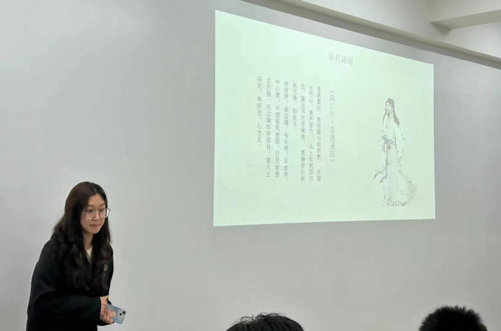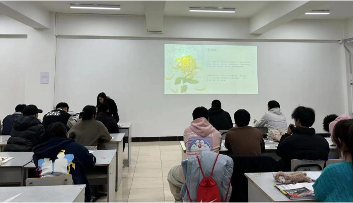 接着,主持人讲述并展示了有关于重阳节的神话传说,通过绘声绘色的讲述使大家沉浸其中,进一步提升同学们对于重阳节的认知。最后,主持人运用一些耳熟能详的诗词,使民族文化更加厚植于同学心中,同时也唤起同学们对于中华文化的热爱。
