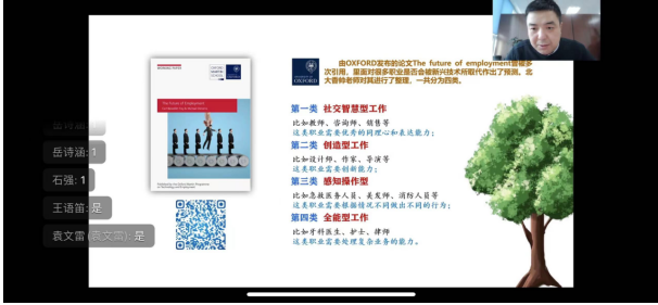 为进一步加强我校学生对当代大学生就业形势的认知,增强就业观念、提高自身就业率,吉林动画学院于11月13日开展第二场线上就业创业系列讲座,本次讲座由教育部认证的国家职业指导师、国家创业指导师王志宇主讲,文化产业商学院19级、20级学生参加本次讲座。
