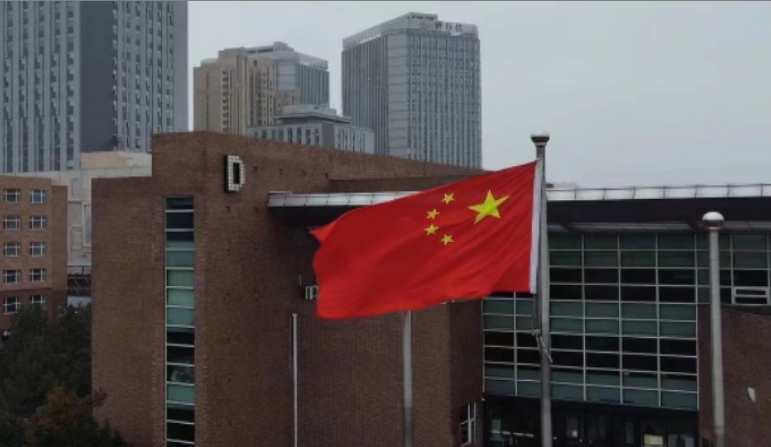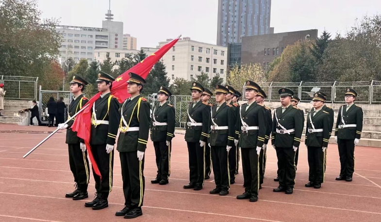 随着配乐缓缓奏响,国旗班护送国旗,迈着整齐划一的步伐向前走来。主席台一声令下,国旗手挥动手臂,把鲜艳的五星红旗在空中划出了一条优美的弧线,伴随着《义勇军进行曲》缓缓升起,一抹鲜红飘扬在吉林动画学院上空。