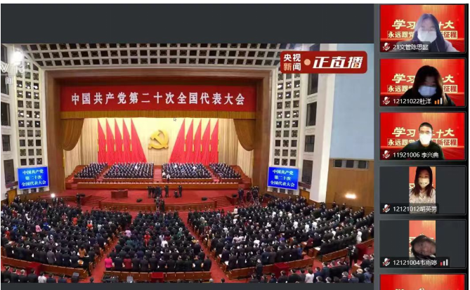 大会以“高举中国特色社会主义伟大旗帜,全面贯彻新时代中国特色社会主义思想,弘扬伟大建党精神,自信自强、守正创新,踔厉奋发、勇毅前行,为全面建设社会主义现代化国家、全面推进中华民族伟大复兴而团结奋斗”为主题,科学谋划了未来5年乃至更长时期党和国家事业发展的目标任务及大政方针,势必团结带领全国各族人民,以更加昂扬的姿态书写更加宏伟的篇章。在学习的同时,各班的团支书们也贯彻了文商学子认真负责的工作态度,带动全体学生积极响应中国共产党的号召,认真学习二十大的会议内涵。