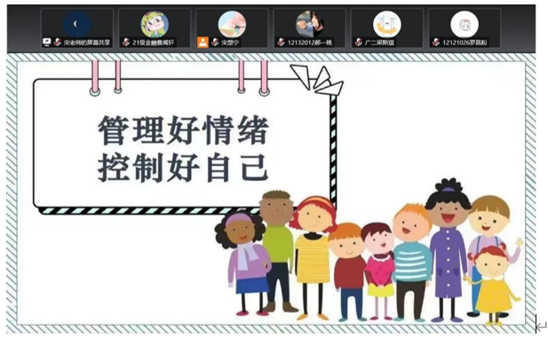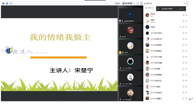 针对疫情期间出现的情绪困扰,辅导员张海涛提出了可以通过对情绪的察觉、情绪的表达、调整自己的认知以及规律的生活四个步骤来有效缓解。他用诙谐幽默的语言为学生们科普了心理知识,并帮助大家建立起了心理健康防线。在互动环节,辅导员宋楚宁耐心的解答了同学们的困惑,引导同学们以积极的心态度过特殊时期。