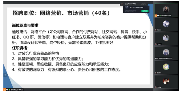为更好拓宽2023届毕业生就业渠道,进一步推动大学生就业工作,加强我校与合作企业间的友好交流,11月4日下午五点,华杰东方联合文化产业商学院举办主题为“华杰东方,助力圆梦”的线上宣讲会,市场营销专业2023届全体毕业生共同参加。