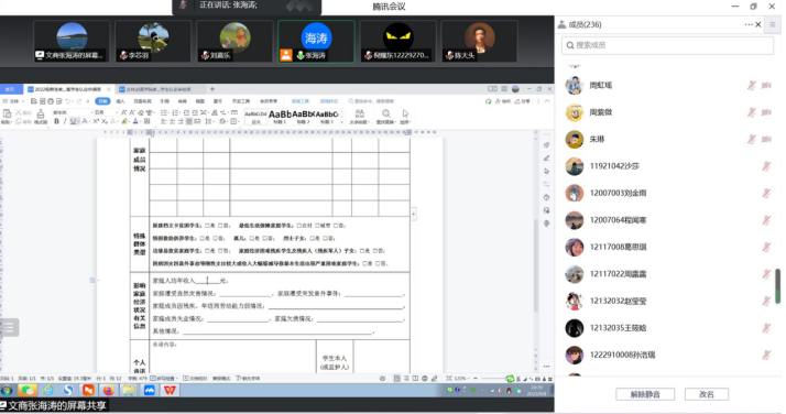 为切实做好学校关于国家助学金工作,激励勤奋学习、积极上进、德智体美全面发展但家庭经济困难,生活俭朴的学生。文化产业商学院于2022年9月8日在线上召开“申请国家助学金会议”,本次会议由学工办主任周虹瑶、辅导员张海涛主持,文化产业商学院辅导员宋楚宁及全体同学参加。