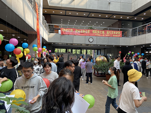 随着活动的开展,现场热闹非凡,文化产业商学院的同学们纷纷参与到猜灯谜活动中去,独自思考或者几个人聚在一起商量探讨,争相破解谜题,同学们纷纷行动起来,连续猜出了好几个构思奇妙的谜题。猜对谜题的队伍露出了兴高采烈的笑容,领到了学校为他们准备的灯笼礼物。