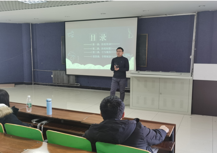 新学期伊始,加强文化产业商学院学生的防疫意识,激励学生在本学期更好地学习、生活。2月25日,文化产业商学院辅导员戴日和张海涛分别在B楼教室开展了“疫情防控,从我做起”开学第一课防疫主题班会,文化产业商学院全体学生参加本次班会。