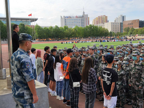 辅导员张海涛老师在交代好各项事务之后,向全体2020级新生介绍了两位军训教官。两位教官声音洪亮的向同学们讲明了他们的军训要求和纪律,让在场的各位新生为即将开始的军训做好准备。各位新生也表现出毫不畏惧艰难,不怕吃苦的精神,展示着新时代文商学子的奋斗精神。最后,各位助导建群登记,组织退场。