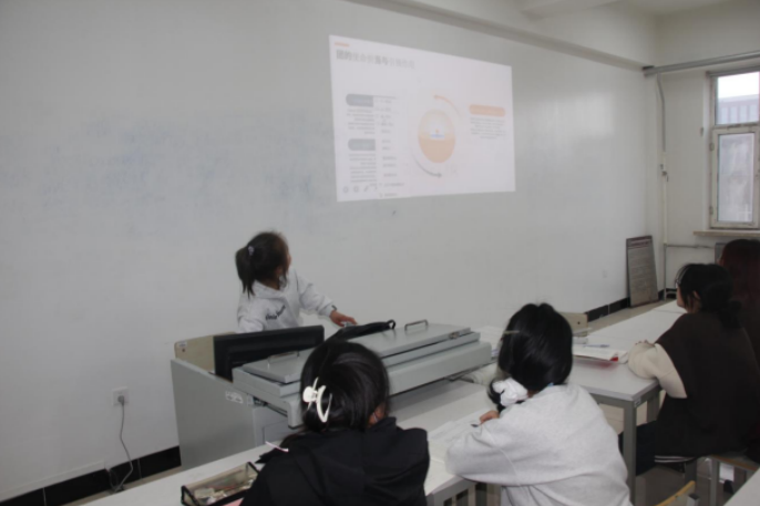 团课中,赵睿姝同学通过播放纪录片的形式,将一段段波澜壮阔的革命历史呈现在同学们眼前。那些为了民族解放、人民幸福而英勇献身的先烈们的英雄事迹,让在场的每一个人都真切感受到了他们坚定的理想信念和无私的奉献精神,也深刻体会到如今的和平生活来之不易。