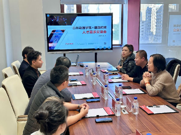 为深化产教融合,推动人才培养与市场需求精准对接,吉林动画学院文化产业商学院常务院长韩国薇、院长助理李海龙、广告系主任柳明、双创基础教学部部长杨洲一行深入吉林省唐韵文化传媒有限公司开展访企拓岗活动,企业方人事部门总监张伟、设计部门总监杨达、项目部门总监魏立、创意部门总监王铁然、数字营销部门总监张馨月等部门领导参与活动。