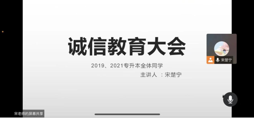 在本次会议中,辅导员宋楚宁老师强调了有关于诚信论文的相关事宜。宋楚宁老师指出,19级毕业生、21级专升本毕业生的论文即将开题答辩,同学们切不可因为一时的懒惰而去选择所谓的“枪手代写”。高校毕业论文是检验学生对所学知识综合运用能力的一个重要环节,代写等不正当手段的背后是无尽的深渊,论文一但被发现诚信等问题,学校会立即严肃处置。希望同学们认真对待此事。