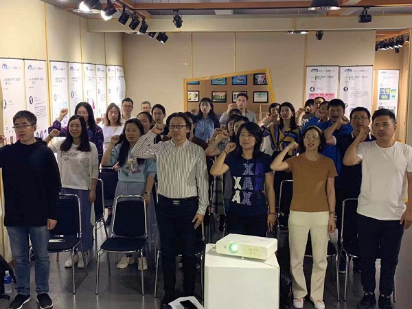 首先,袁锐带领文商学院全体教师面向国旗按照《人民教师誓词》进行宣誓,整个宣誓过程庄重而神圣,增加了教师的职业使命感和荣誉感。