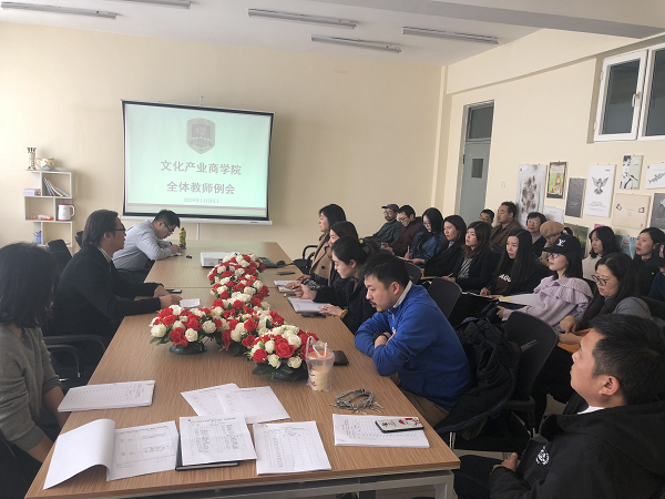 2019年11月6日,文化产业商学院在B521召开学院教师例会,会议由常务副院长谭悦主持,学院全体人员参会。