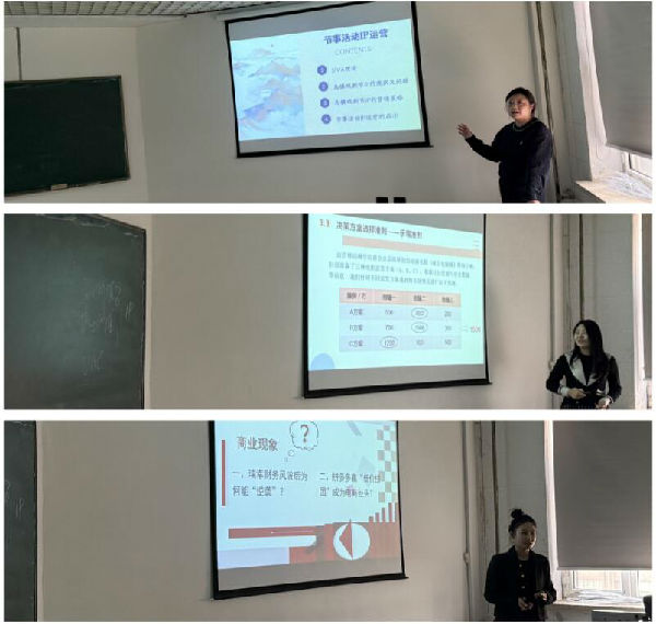 为贯彻落实学校教学评估工作要求,进一步提升教师教学能力,文化产业商学院于2025年4月24日在B524教室成功举办第三期青年教师教学大练兵活动,为本学期教学能力提升系列活动画上圆满句号。本期活动由王墨雨、代毓彤、冯绮、刘颖、马林峰、王逊六位青年教师进行教学展示,全院教师积极参与观摩学习。