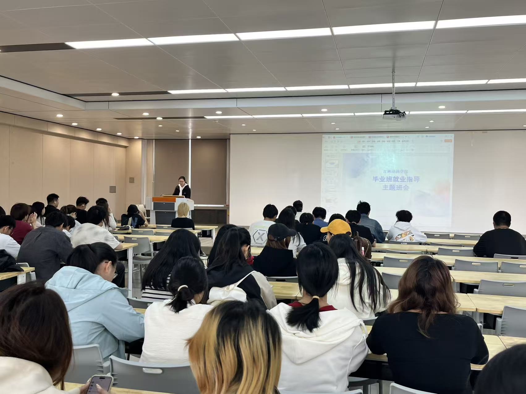 班会伊始,刘馨怡辅导员结合文化产业领域就业趋势,以近三年行业招聘数据为切入点,系统分析了当前文化创意、影视传媒、文旅融合等领域的岗位需求特点与能力要求。针对毕业生普遍存在的“职业定位模糊”“行业认知不足”等困惑,通过“岗位画像拆解+优秀校友案例分享”的形式,呈现了不同职业路径的成长轨迹与发展前景,为同学们提供了可参考的职业规划框架。