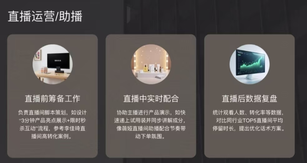 随后,企业负责人围绕直播运营、助播等核心岗位,拆解了全流程工作内容,细致讲解直播前期筹备、中期现场配合和后期复盘总结等工作要求。同时,负责人就脚本策划、互动设计等具体工作与同学们进行了互动交流,让同学们清楚了解岗位核心职责与所需的专业能力和综合素养。