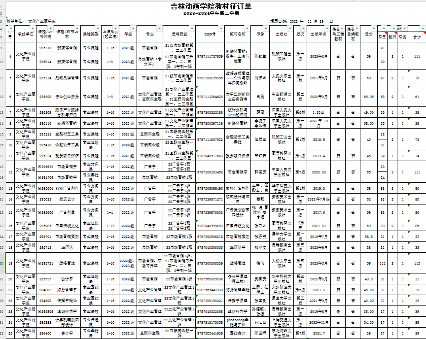 2023-2024学年第二学期教材征订统计信息