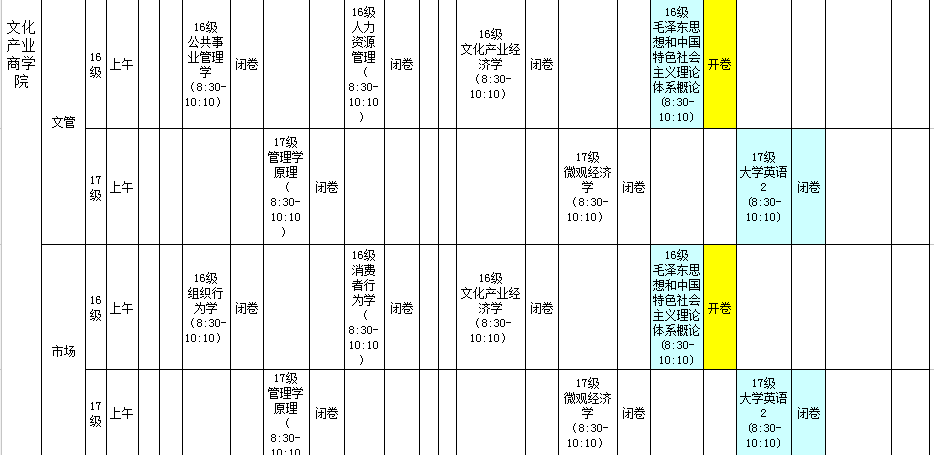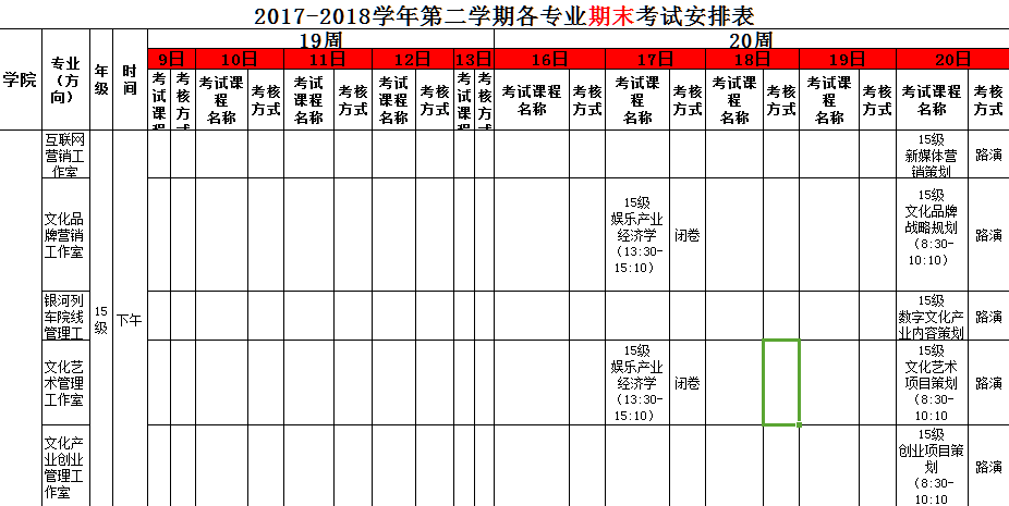 2017-2018学年第二学期期末考试安排表