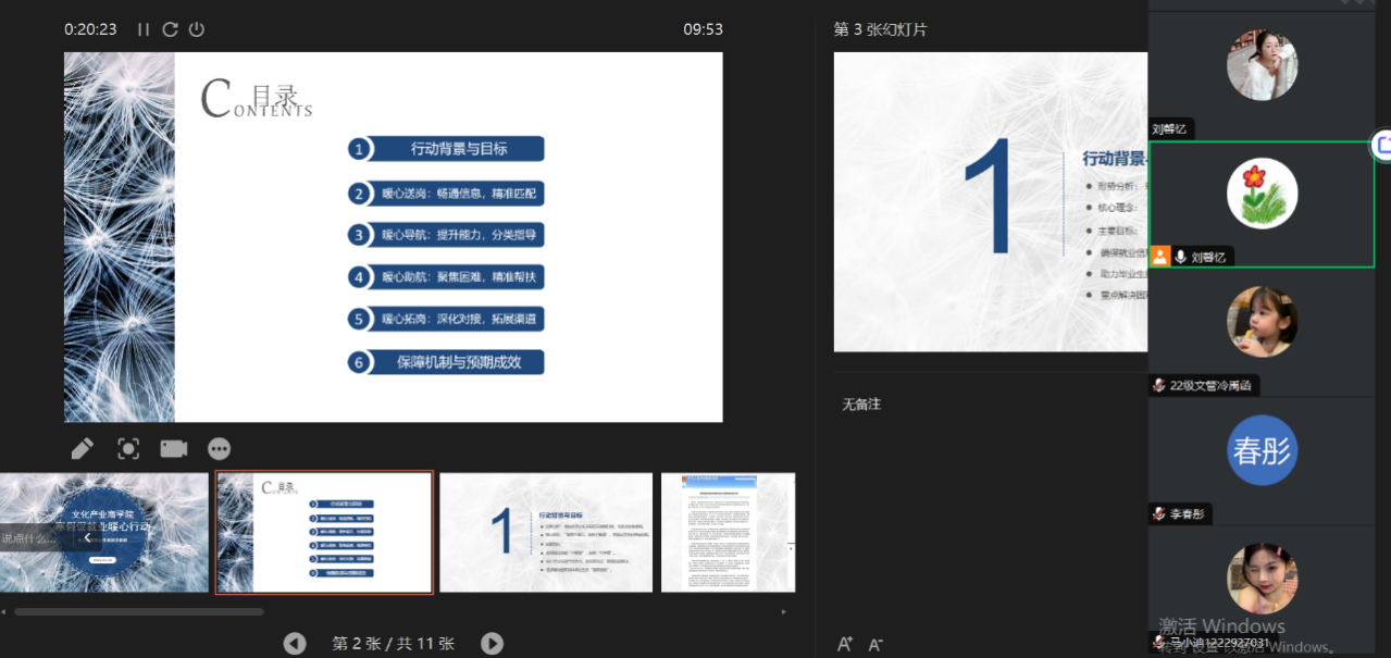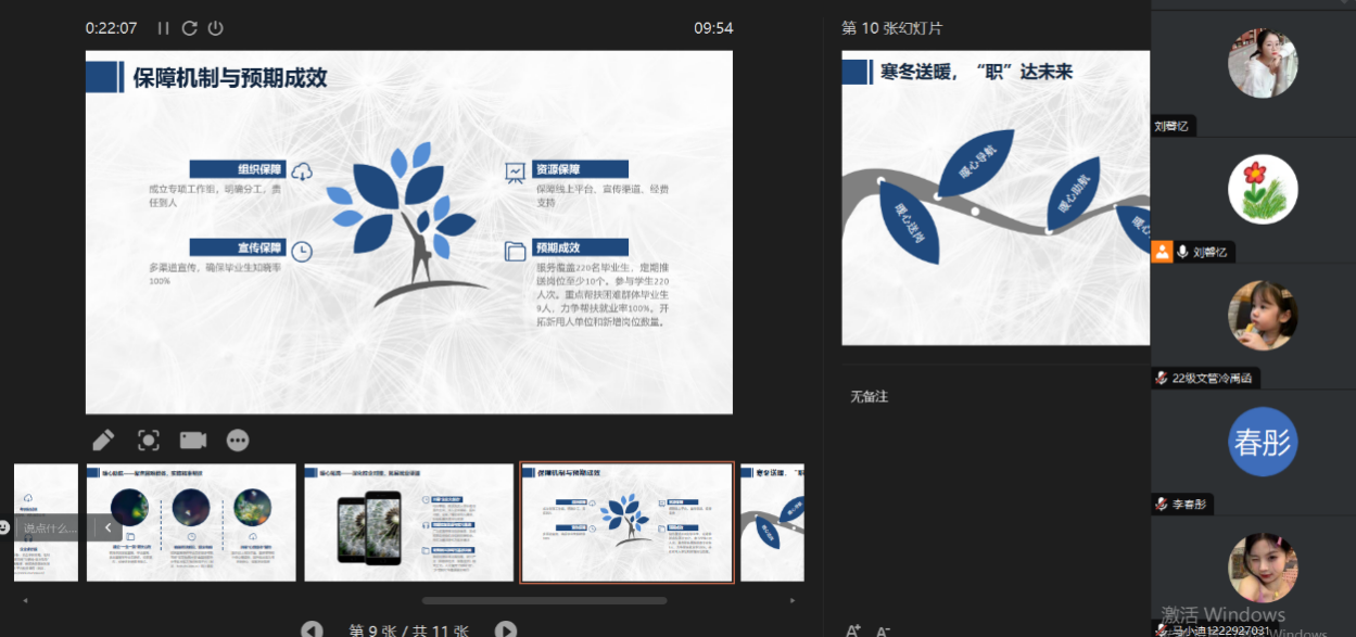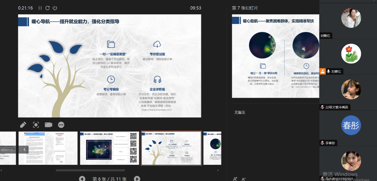 本次班会全程以PPT直播形式开展,针对毕业生求职难点提供简历打磨、面试模拟等个性化指导,同步解读最新就业扶持政策,联动行业资源推送优质岗位信息。同时,还组织学子收看教育部“互联网 + 就业指导”公益直播课,助力毕业生全方位夯实就业能力。